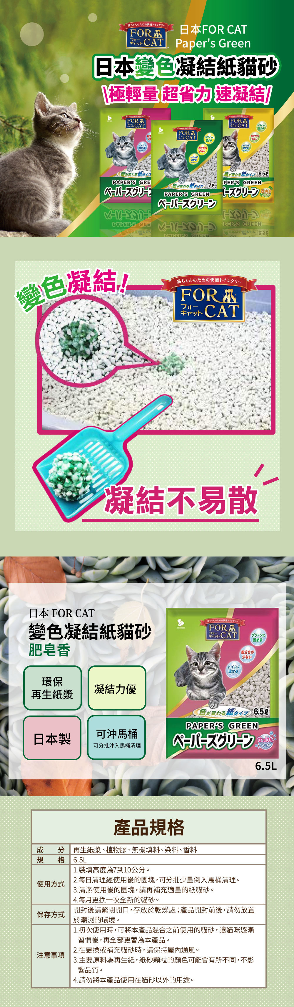 日本FOR CAT | 變色凝結紙貓砂-肥皂香(6.5L)