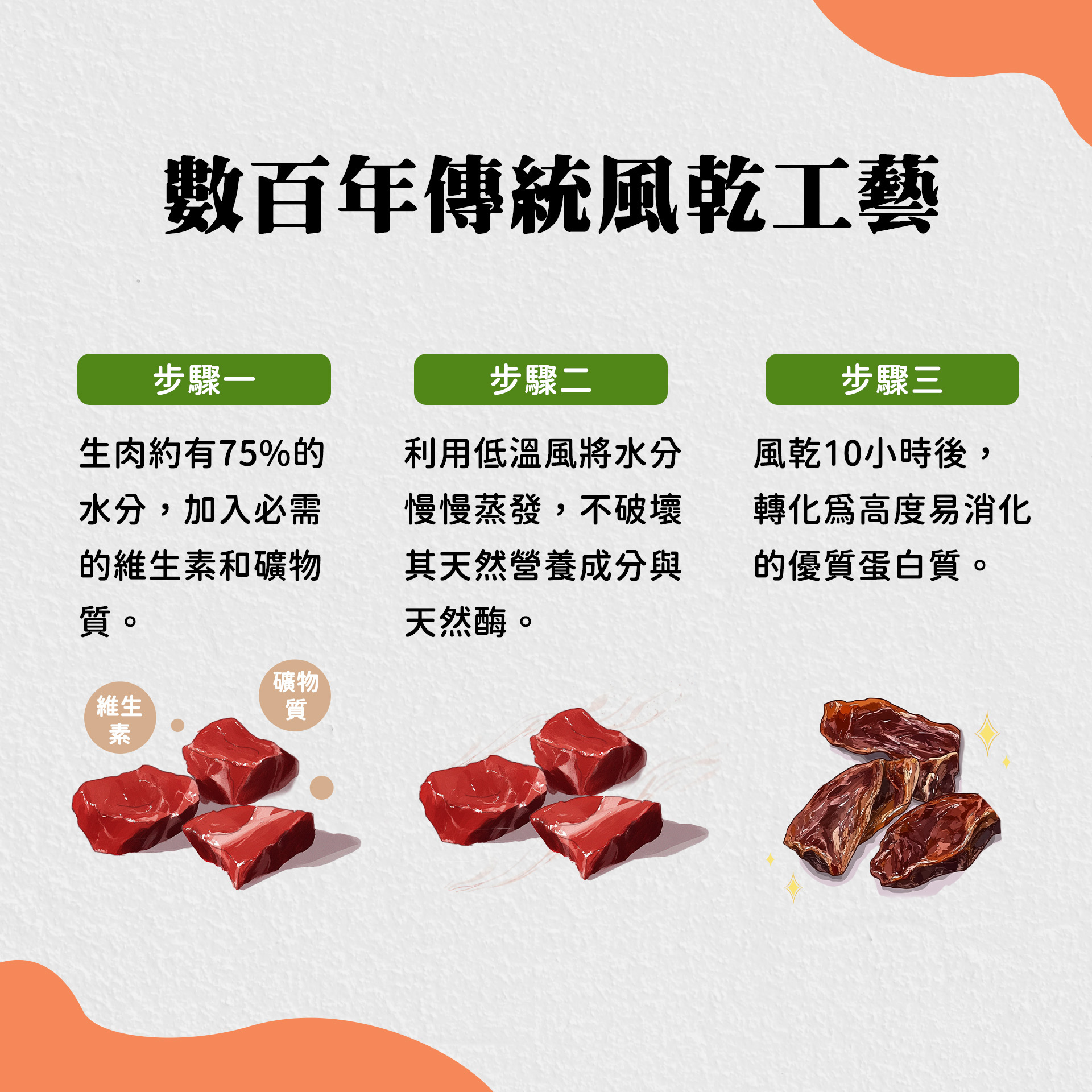 ◆獨特風乾製法,保留完整的營養成分