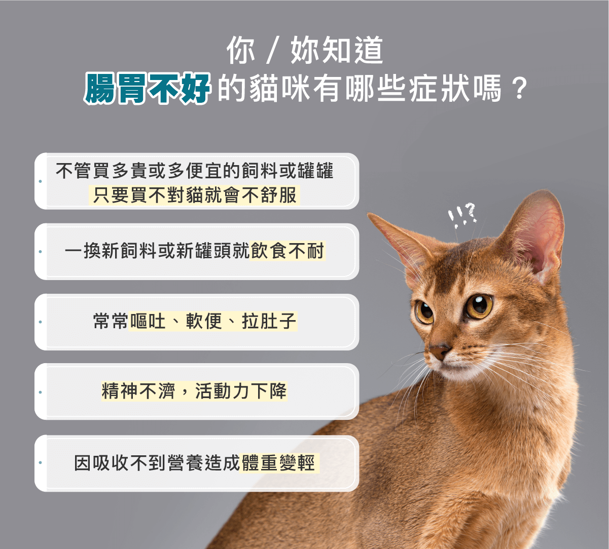 對於胃腸敏感與有腸胃問題的貓常常會發生體重減輕和流失水分礦物質,