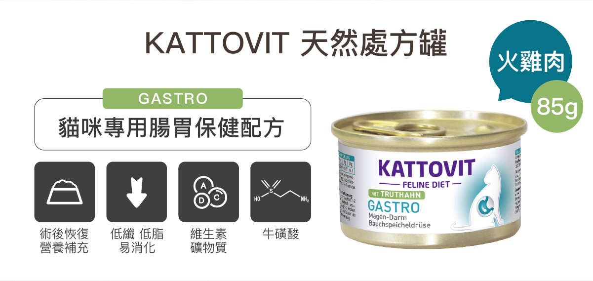 KATTOVIT Gastro-Drink富含高電解質,選用高生物利用率最優質的雞胸肉塊調製可以刺激貓咪飲水慾望和食慾。