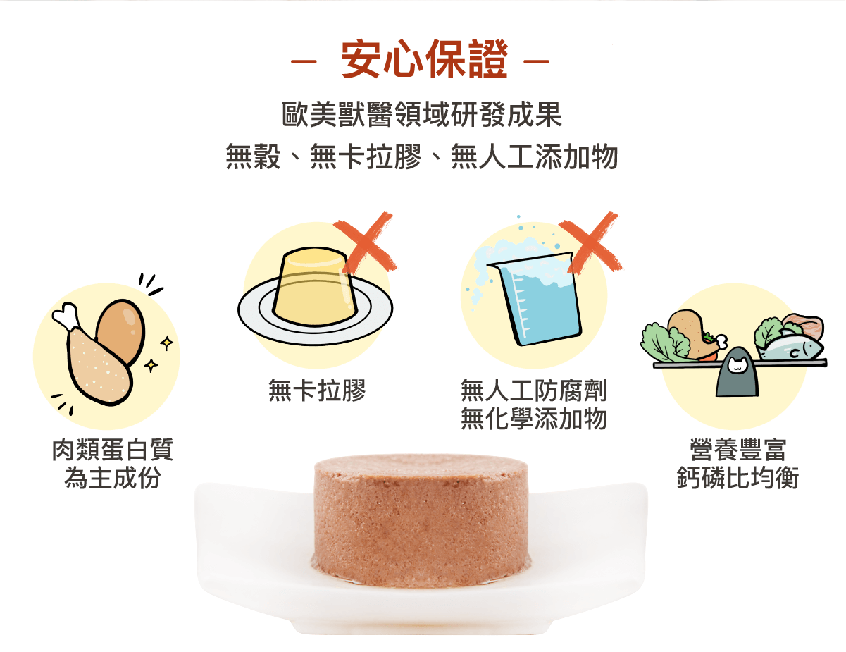 康復階段的貓通常會有較高的能量和水分需求。選用高生物利用率最優質的雞胸肉塊調製可以刺激貓咪飲水慾望和食慾。