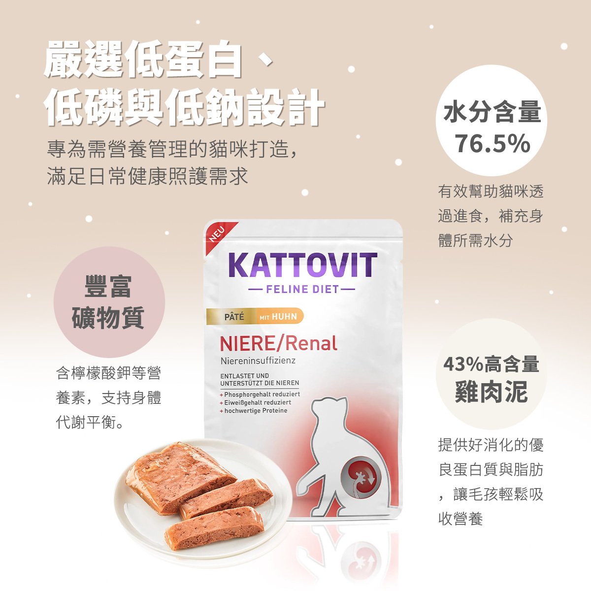 ◆低蛋白、低磷低鈉,符合特定營養需求