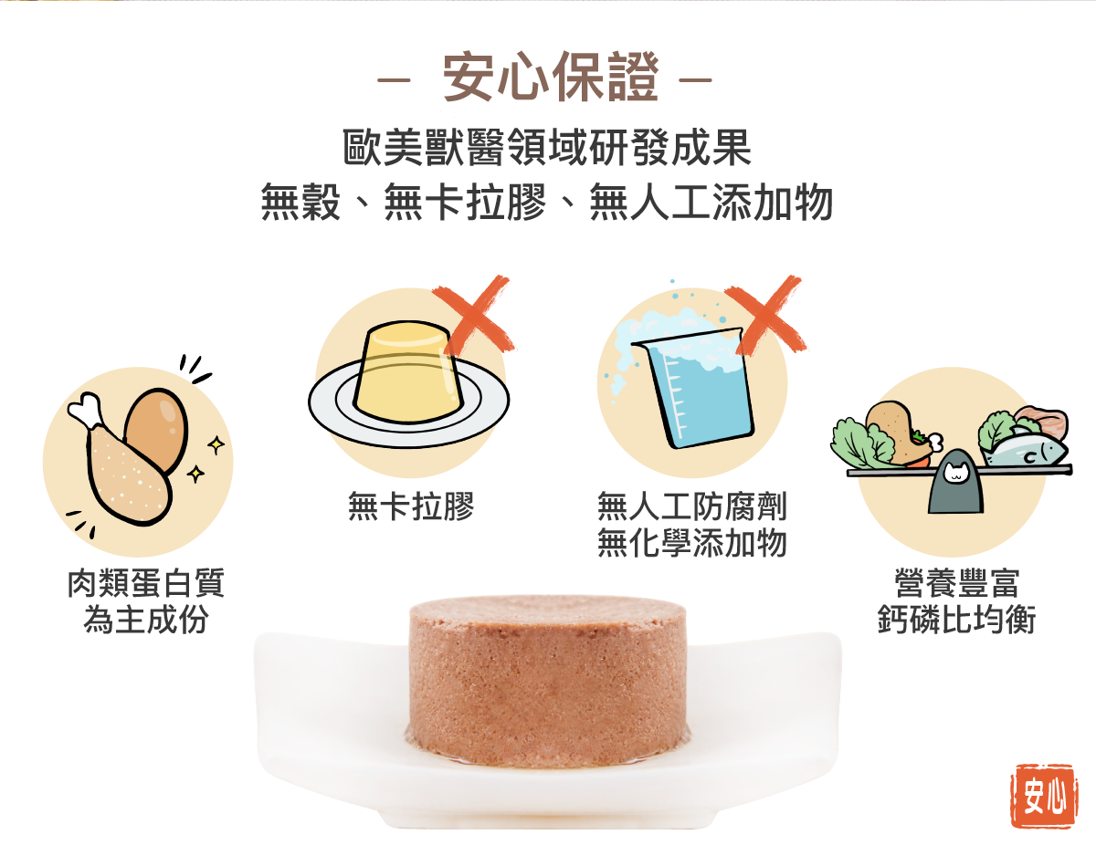 康復階段的貓通常會有較高的能量和水分需求。選用高生物利用率最優質的雞胸肉塊調製可以刺激貓咪飲水慾望和食慾。